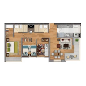 Mira la Distribución de estos lindos Departamentos en venta en el Callao, el Edificio "CITY", el cual realiza una entrega inmediata, este está realizado por el Grupo "Paz Centenario".
